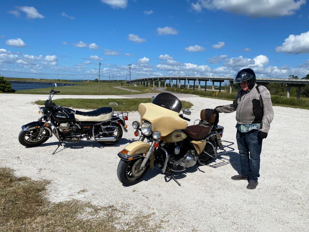 Pops with his beloved Harley and his Guzzi in Florida…he’s one happy ombre!