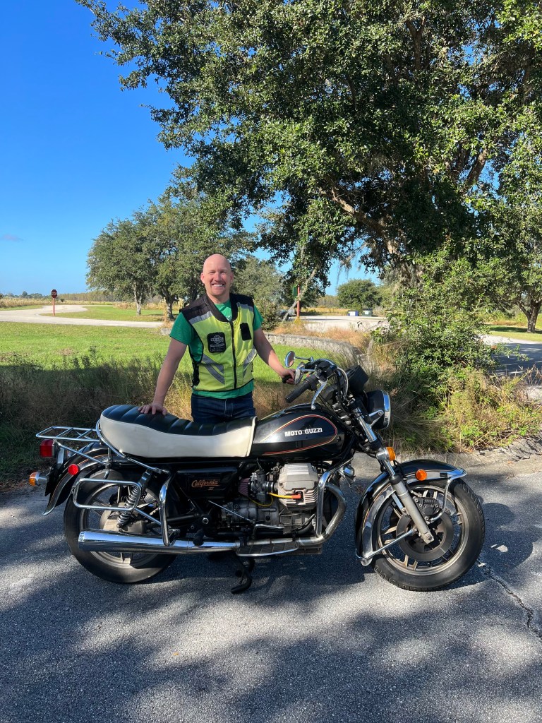 Over the years I have done quite a bit of work on the old Guzzi. Not because anything broke, but because 40 years and 100,000 miles will wreak havoc on non metal parts. In fact, it never left me stranded and I never had to actually fix anything! But to keep her running like new I have replaced all of the fuel lines, electrical lines, airbox, and switched it from a points ignition system to an electric ignition system. In 2022, I decided to do something special for my pops. He and my mom live in a small town in Florida and although pops is getting older, he still loves to ride! He has a beautiful old Harley that he rides all over the place, but it isn’t the most reliable bike. I decided I would totally refurbish the Guzzi, try to keep it as stock as possible, and give it back to my dad. I spent about a month tearing it down, cleaning good parts and replacing rubber/plastic parts. When I was finally done, I rode the bike down to his house and handed him the title and the keys. The excited look on his face reminded me of when I was a kid! He graciously accepted the keys, and promptly left my mom and I standing in the driveway while he rumbled away on his long-lost Guzzi. He has since been all over the state of Florida on that bike and it still runs perfect to this day! I’ve owned a lot of bikes, but this one is my favorite.