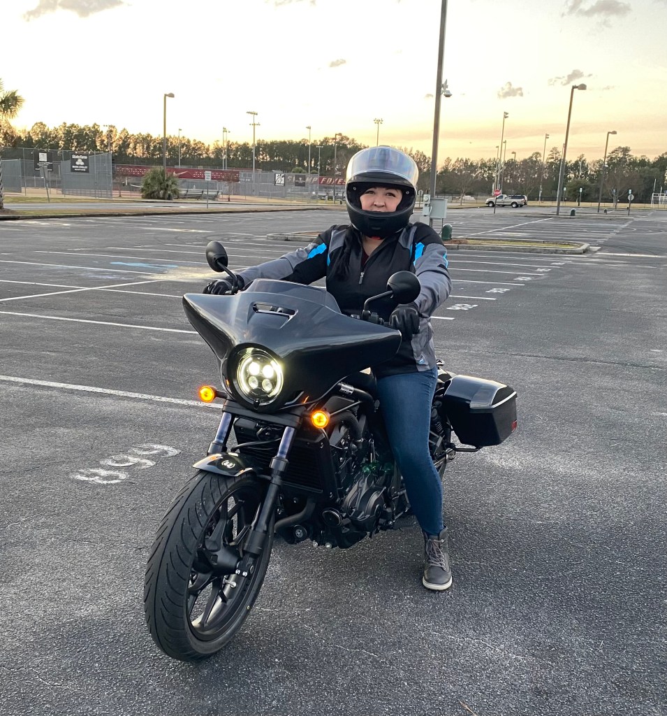 The Rebel 1100DCT Tour is a fine bike! The best part is that they are relatively cheap, and you get a lot of value and a lot of bike for the money. She still owns the Rebel and we have had zero issues so far. It really is a fun little bike and I would definitely put it near the top of the list if you’re looking for a beginner bike! I have no regrets, and every time I see her on it I know I made the right choice. Besides…what could possibly be hotter than a motorcycle mama??