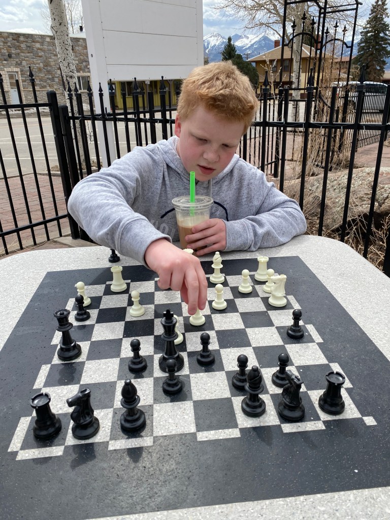 Another neat thing about Westcliffe is their little town square. It is a small play area with games available for adults and kids. Noah and I took a minute to play a game of chess…he promptly beat me.
