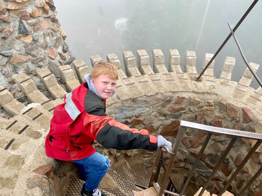 Noah climbed the steep stairs with confidence! Scoffing at his “wuss dad” for being so cautious.