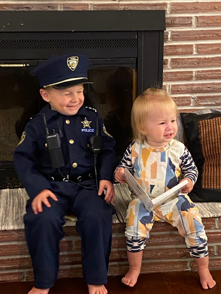 My nephew’s adorable son and daughter ran out to greet me…his son was dressed as a Police Officer and I was certain I was going to be ticketed for speeding. Thankfully he just finished his shift and was off the clock…