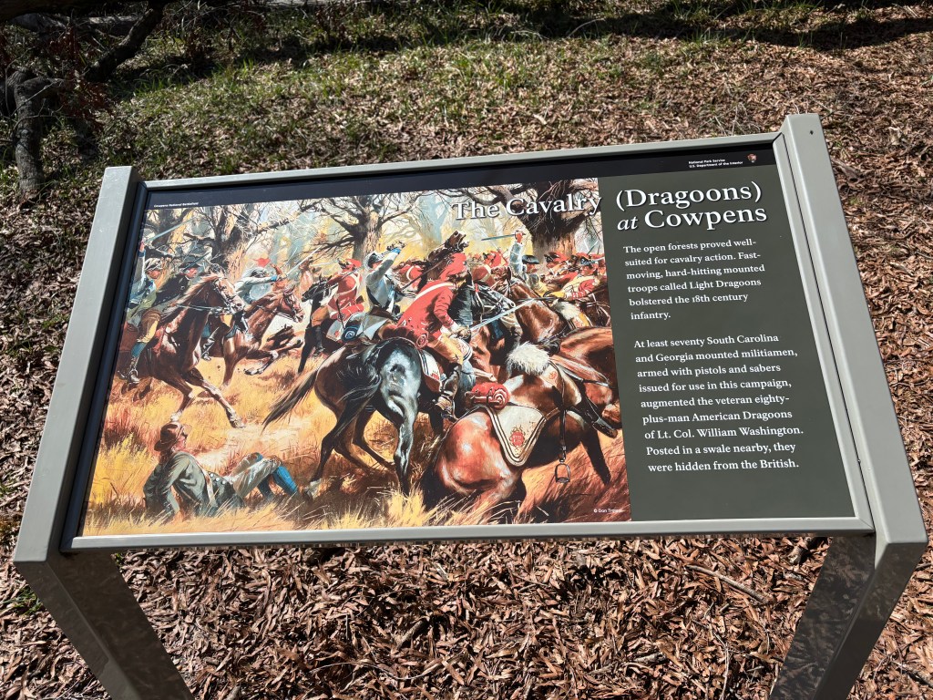 The Cowpens Battlefield has a one mile “battlefield trail” that allows you to physically stand in the positions of both the Americans and the British. So cool!