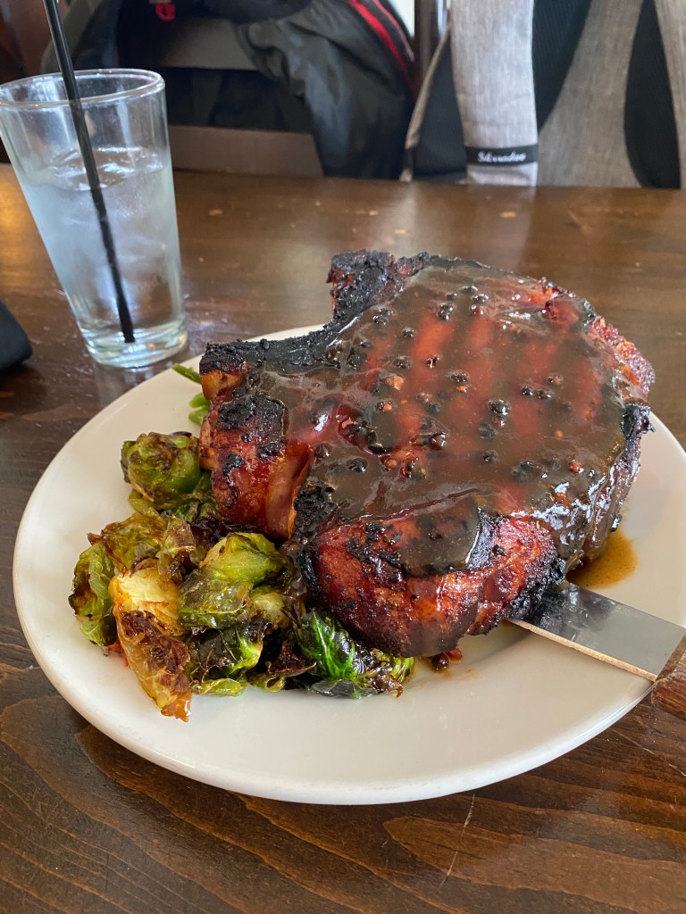 The delicious pork chop at the Manchester Arms Restaurant